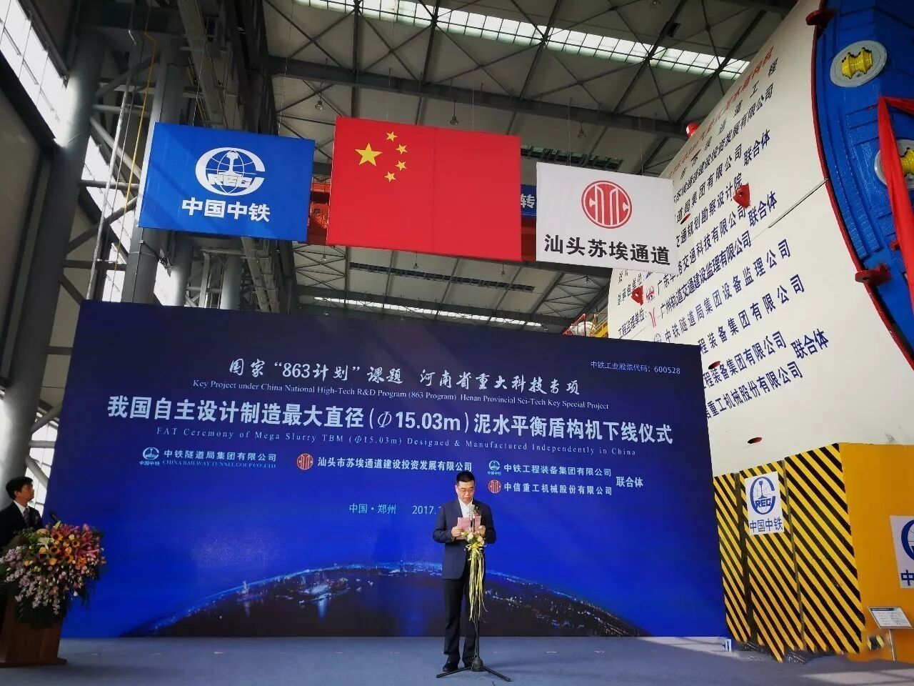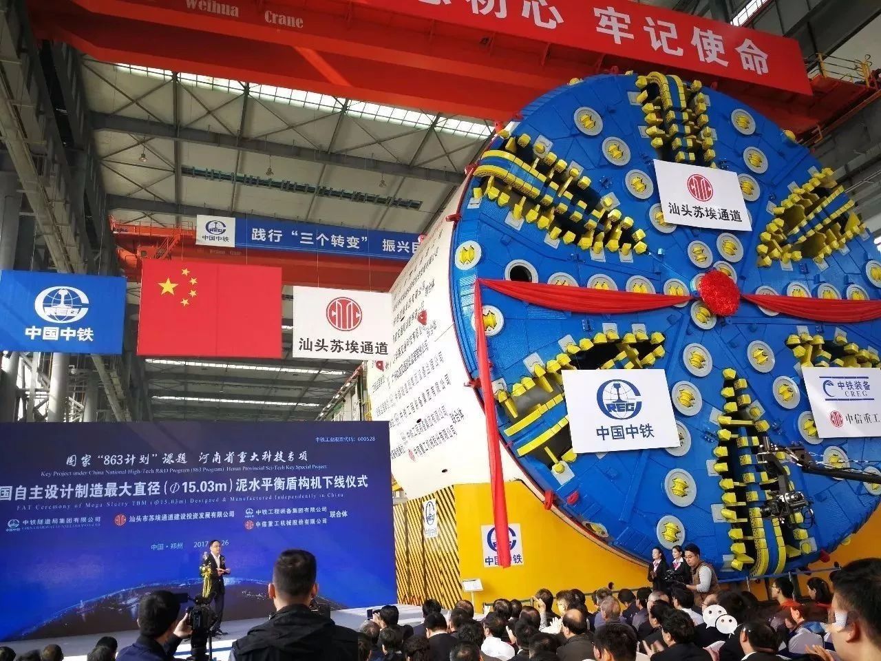 10月26日,直径达15.03米的泥水平衡盾构机在中铁装备盾构总装车间正式下线,设备将应用于由中铁隧道局集团承建的汕头海湾隧道项目。这也是迄今为止我国自主设计制造的最大直径的泥水平衡盾构机,它的成功下线打破了国外品牌多年来一统全球超大直径盾构的局面。