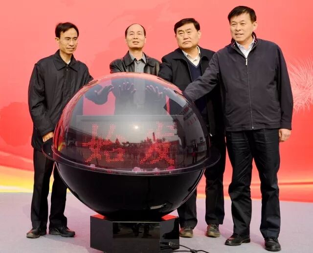 中铁十四局集团党委书记、董事长张挺军,中国铁路总公司工管中心副主任邹振华,北京铁路局副局长王长钊,京张城际铁路公司总经理余泽西共同触摸启动球