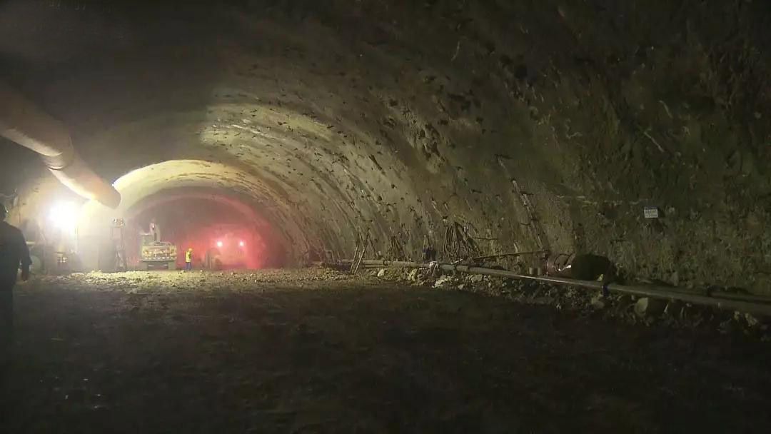 F1风化深槽是140米,整个F1风化深槽延伸到整个的断面范围之内,对整个断面都有影响,然后F2风化深槽就是在拱顶位置,它只是一个影响带,F2风化深槽有160米,整体的进入F1风化深槽施工是在2018年的8月份,F2风化深槽施工会在今年的10月份。目前左线隧道还是采取针对四级围岩的台阶法进行掘进。
