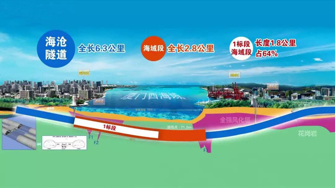 海沧隧道全长6.3公里,其中有2.8公里是海域段,而他们施工的1标段海域段就有1.8公里,占64%。