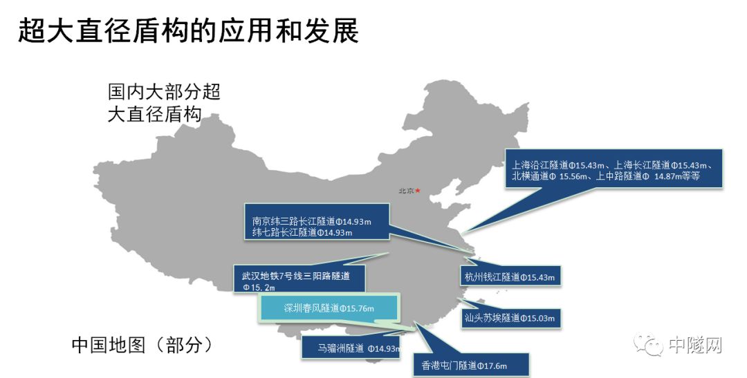 中国部分超大直径盾构的应用和发展