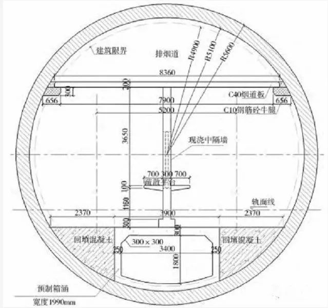中间风井—江心洲站盾构区间地质水文条件复杂、长距离一次穿越长江,风险大,工期紧,同步施工坚持优先保证盾构正常掘进的前提下进行。两者之间的相互影响因素:(1)箱涵两侧回填时,运输混凝土车辆占用盾构掘进材料的运输路线,箱涵回填进度的快慢也直接影响到盾构掘进材料的运输。箱涵回填施工快,则能在隧道内提供更广阔的路面,方便洞内车辆会车,提高盾构掘进材料的供应效率。(2)由于盾构掘进距离长,在洞内布置了2台泥浆接力泵,致使中隔墙台车无法通过;烟道板台车针对泥浆接力泵的阻碍情况,采用了变换支腿的方式得以顺利通过。(3)盾构姿态控制的好坏对同步施工有较大影响。如盾构隧道轴线高程偏差过大导致牛腿、烟道板标高发生变化,牛腿、烟道板台车重新改造等;水平方向的偏差过大主要体现在实际线路中心线与结构中心线不一致,需重新调线。