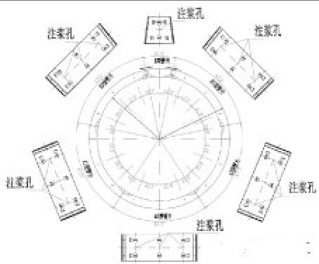 (2)采用4环增设注浆孔管片 (见图5)用于盾尾刷更换环号前四环(536-539环)管片的拼装,2环(536、537环)进行全环磷酸浆补强,靠近盾尾2环(538、539环)进行聚氨酯堵水且防止二次注浆体越过止浆板包裹盾体。 盾尾后方535-525环,进行二次注浆(双液浆)补强。 施工时,从前往后顺序开始注浆,即先注入聚氨酯,再注入磷酸浆,最后进行双液浆二次注浆。
