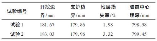 通过式( 6) 即可得出模型试验1 及模型试验2 的地层损失率分别为1. 98%和3. 32%。