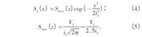 由于Smax和iz取值均随着地层深度z 的增加而改变; 因此,地表以下不同深度地层的Smax和iz不易确定,如果假设地表以下不同深度地层沉降槽曲线仍符合正态分布[2],由式( 1) 和式( 3) 可得