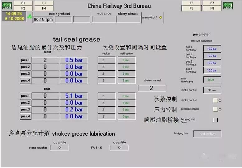 意义:每环记录碎石机和主驱动的油脂冲程次数。