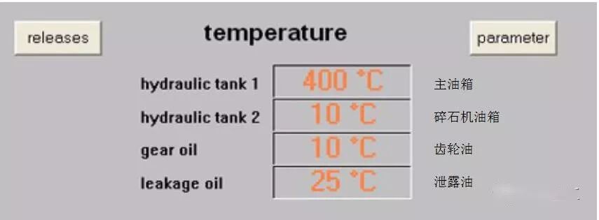 意义:此处涵盖液压油箱1和2、齿轮油箱、泄露油,这些油液都有一定的为设备降温的作用,同时油液也有其自身的安全温度,超出一定临界值,可能引起变质。单位[℃]。