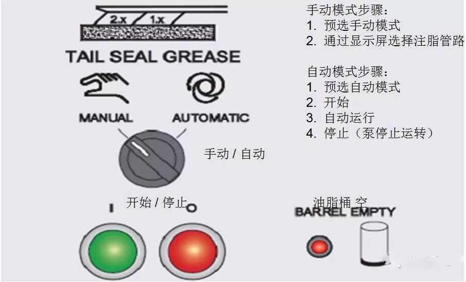 特殊情况:盾尾发生漏浆时,采用手动模式,被选择的点位连续打油脂。