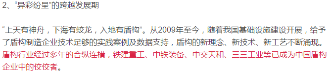 大直径盾构泥水劈裂、超高承压能力、复杂地层盾构掘进、刀盘刀具配置等技术难题仍等着我们进一步攻克,水利输水工程、城市综合管廊、海底隧道等新市场仍等着进一步探索,希望我们的领军企业能保持市场上的风向标,坚守初心,自觉的维系市场的均衡竞争,均衡进步。拭目以待中国制造盾构百尺竿头更进一步!