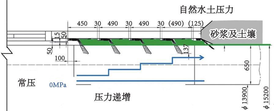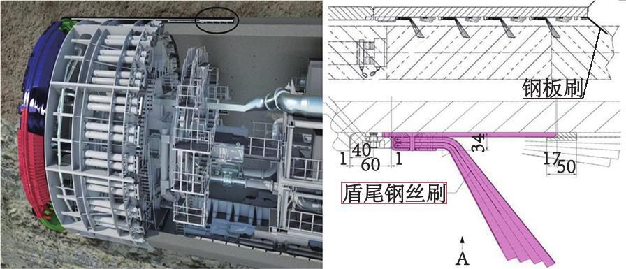 盾尾刷配合适量盾尾油脂的压注,隔离盾构外部压力环境与内部常压工作区域,起到密封盾尾的作用。超大直径泥水气平衡盾构广泛应用于穿越江河湖海的大型水底隧道建设,通常具有掘进距离长、水头压力高、穿越土层复杂等特点,相较于其它类型盾构,超大直径盾构盾尾间隙大、距离长、腔体多,密封效果的优劣对于工程安全尤为重要,根据以往施工经验,长距离推进导致盾尾密封装置的损伤几乎无可避免。文章依托武汉市轨道交通 7 号线三阳路长江隧道工程实例,针对超大直径泥水气平衡盾构在长江底部高水头复合地层环境中施工特点,分析总结盾尾刷损伤的机理原因,并提出了有针对性的改进措施,为今后盾尾密封装置的选型优化与施工保护,给出了可供借鉴的参考[1-3] 。