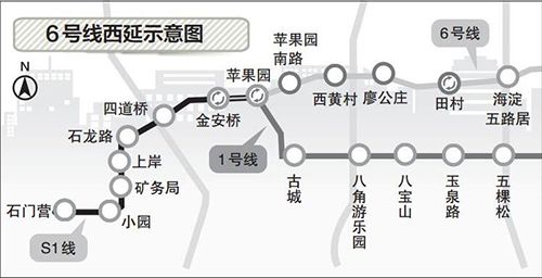 6号线西延苹果园以东部分预计2018年年底具备开通试运营条件。