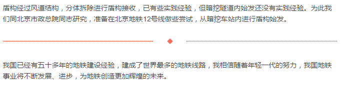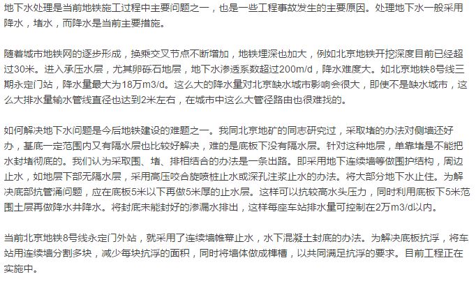 为地铁建设贡献五十年原北京城建集团副总工程师贺长俊 地铁五十年工作 北京地铁复八线施工 当前地铁施工的几点建议1. 关于地下水处理问题:2. 关于暗挖车站进行盾构始发与接收问题