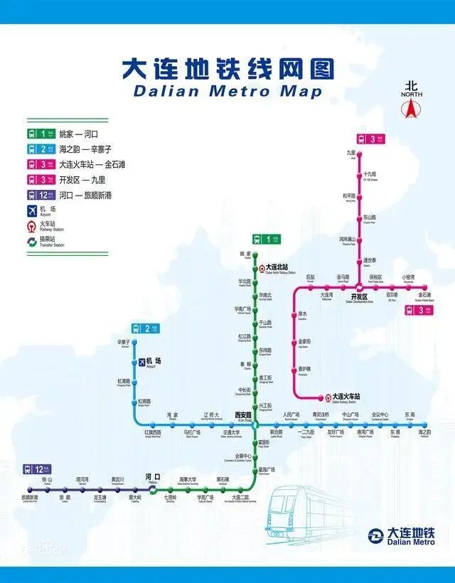 大连地铁(Dalian Metro)是指服务于中国辽宁省大连市的城市轨道交通,其第一条线路大连地铁3号线于2003年5月1日正式开通运营,使大连成为辽宁省首个开通城市轨道交通的城市。