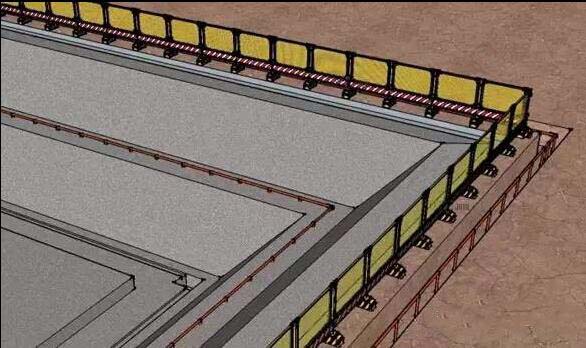 4、基坑周边不得堆放物料、机具等较大负荷的物料。基坑内必须设置专用人员上下通道,防护栏杆应刷警示色,间距为300~400mm。