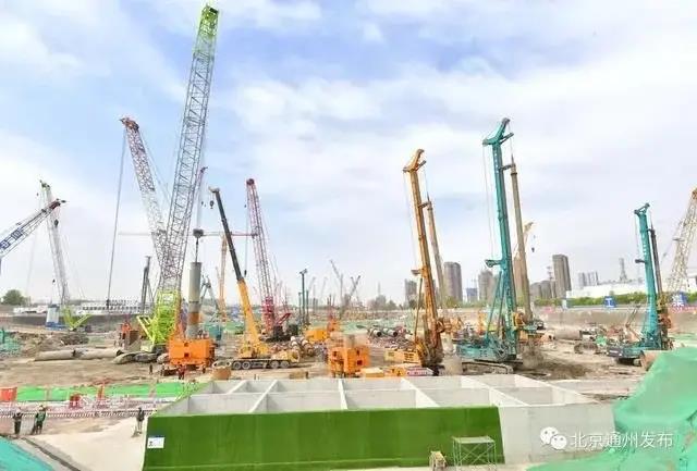 北京城市副中心站工程01标段中铁建设作业面,已正式进入围护施工阶段,深达50多米的不间断地下连续墙施工正在紧张有序进行,为后续逆作结构施工打下坚实基础。